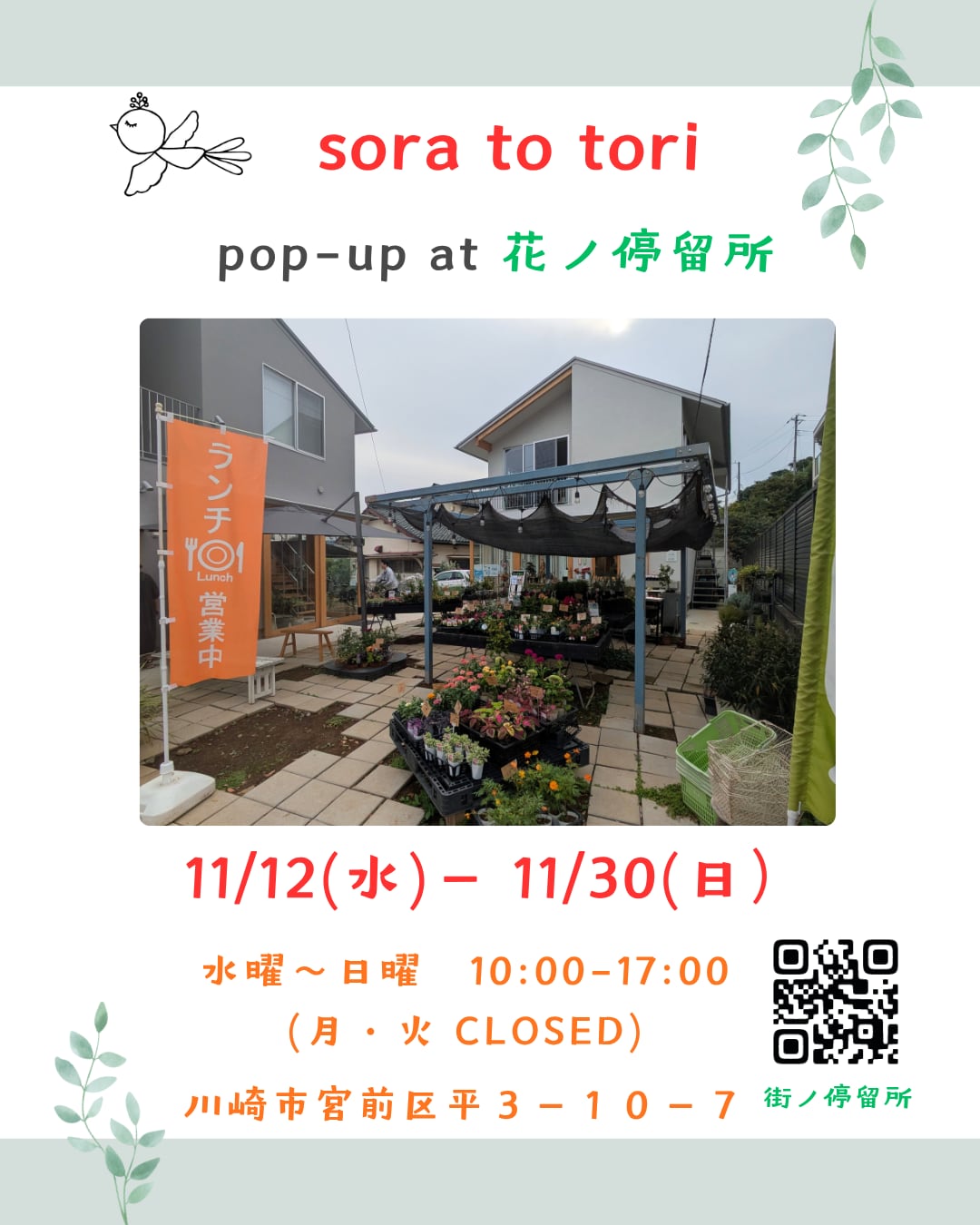 11/12-11/30 pop-up【花ノ停留所】 川崎市宮前区にある【街ノ停留所】内 にて開催します! 営業日 水~日曜日 10:00~17:00
