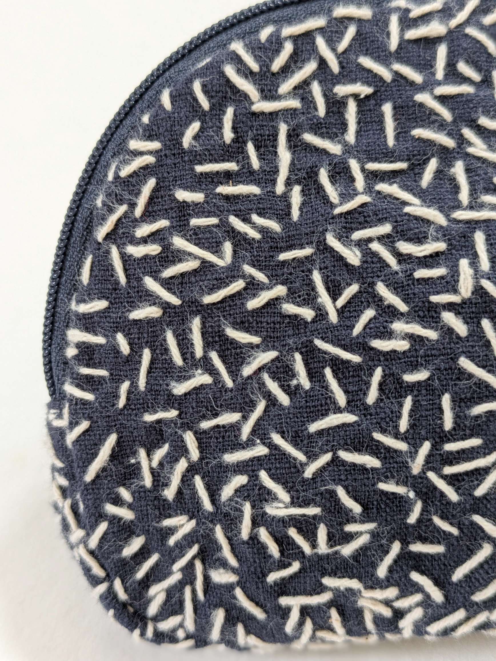 キナリの糸で刺し子を施しています。